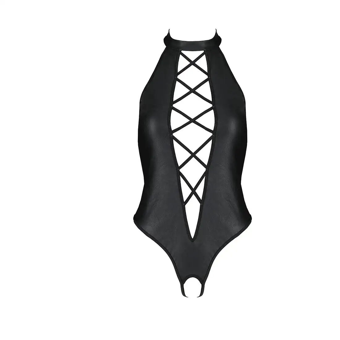 Боди из эко-кожи с имитацией шнуровки и открытым доступом Nancy Body black XXL/XXXL - Passion