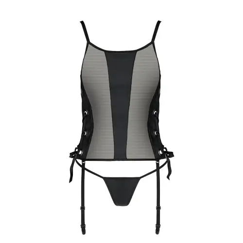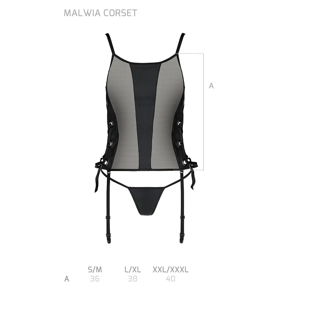 Сетчатый корсет из эко-кожи, с люверсами и съемными пажами Malwia Corset black XXL/XXXL — Passion