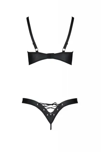 Комплект из экокожи Passion Celine Bikini 6XL/7XL black, открытый бра, стринги со шнуровкой