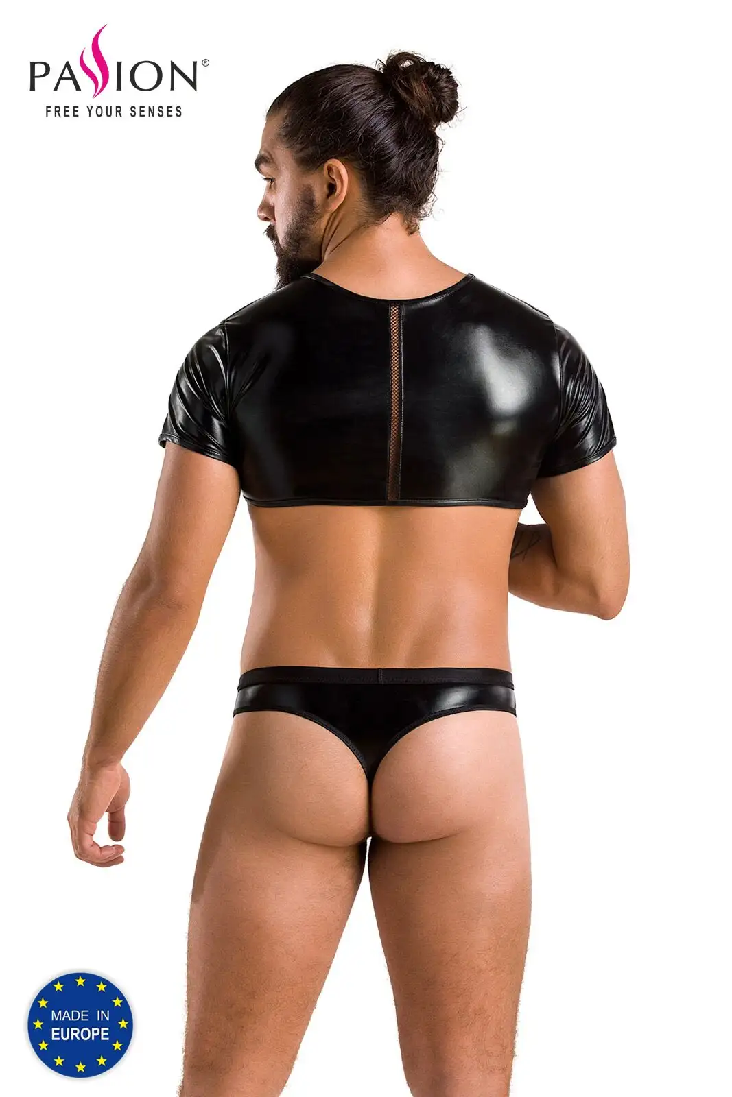 Комплект мужского белья под латекс Passion 057 Set Peter S/M Black, кроп-топ, стринги