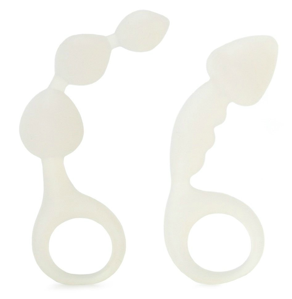 Набор из 2 анальных пробок Bottoms Up Butt Silicone Anal Toy. Цвет - белый.