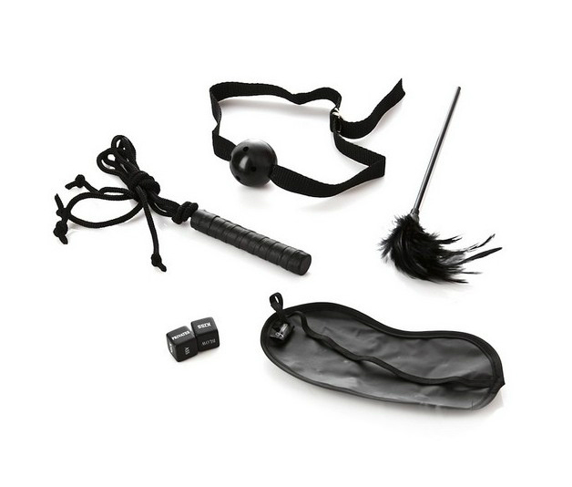 Эротичный набор для бондаж-игр: маска на глаза, перо, кляп, плеть и любовные кости. Разнообразит Вашу интимную жизнь и внесет новые острые ощущения во время сладострастного акта. Страна производитель – США.