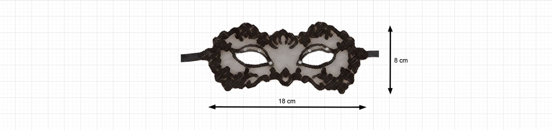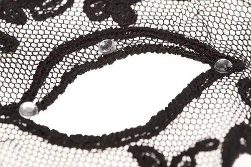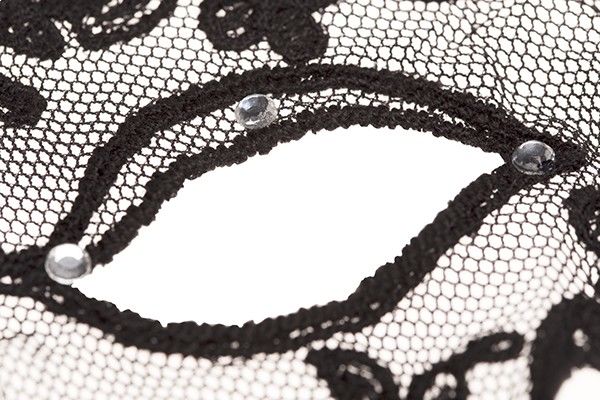 Позиция имеет очень оригинальную форму и полностью сделана из гипюра, а запутанный узор по краям аксессуара создает сказочный образ таинственной незнакомки. Классический жгуче черный цвет прекрасно оттеняет цвет глаз и кожи, подчеркивает красоту женского личика. Вырезы для глаз декорированы блестящими камушками, переливающимися разноцветными огоньками в лучах света. Благодаря этому взгляд становится более загадочным, чарующим и просто сводит мужчин с ума.
