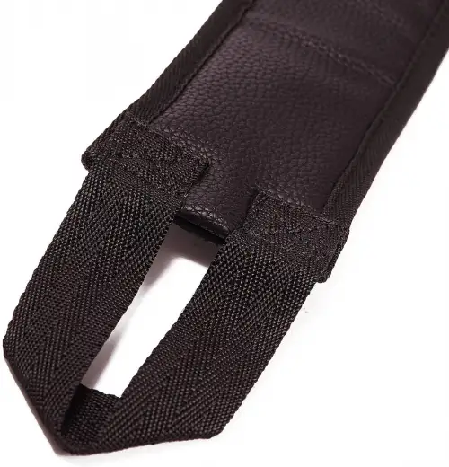 ремешок с ручками, который можно набрасывать на шею или голову партнера. Размер ремня составляет 34 на 6,5 см. Изделие выполнено из нежной искусственной кожи и черной расцветке.